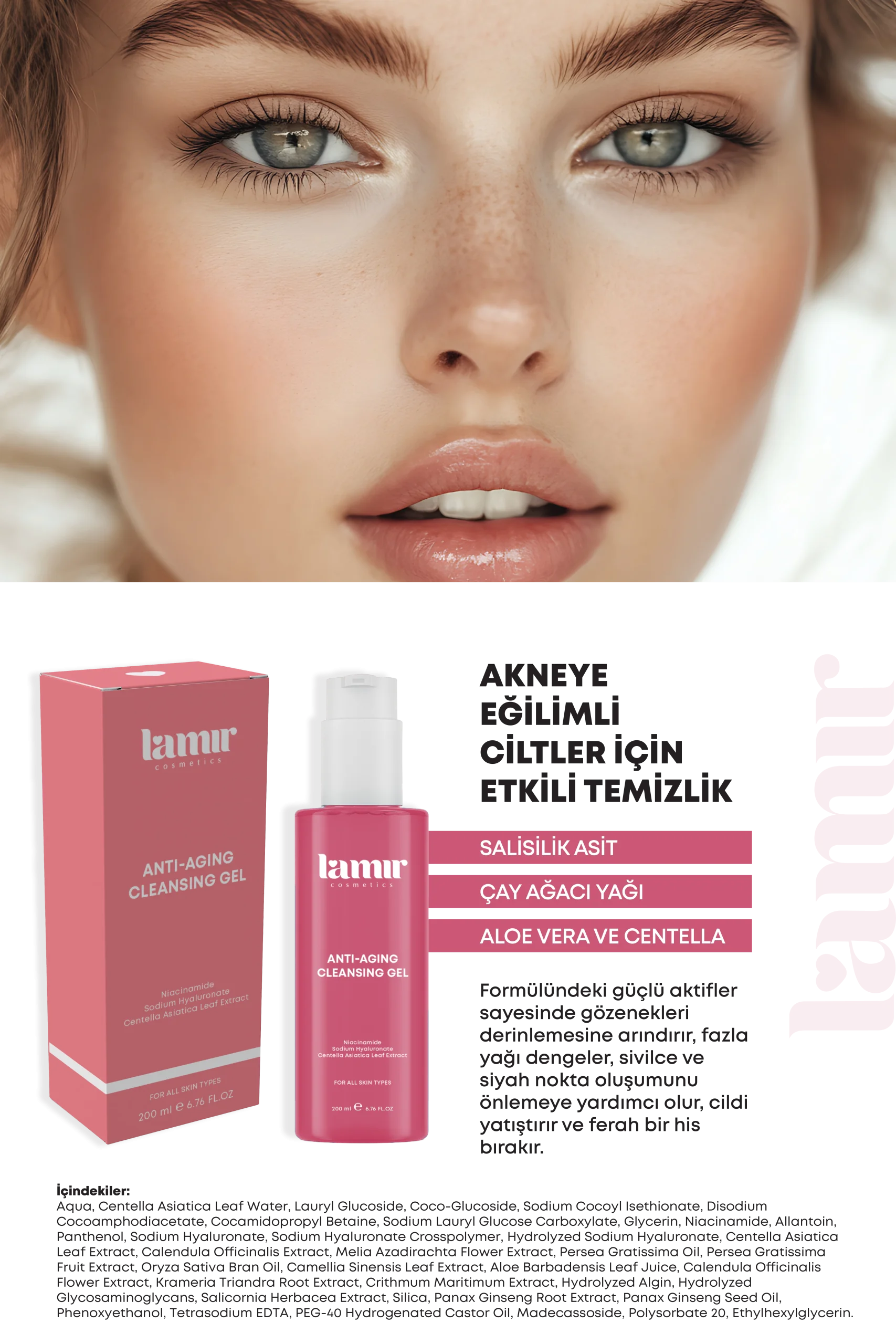 Cildinizi nazikçe arındırırken yaşlanma belirtilerine karşı koruma sağlayanLamir Anti-Aging Yüz Temizleme Jeli, özel formülü ile daha genç, canlı ve sağlıklı bir cilt görünümüne kavuşmanıza yardımcı olur.